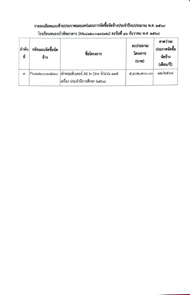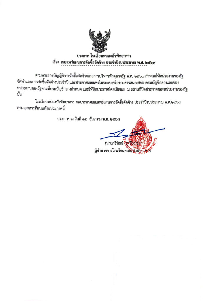 ประกาศโรงเรียนหนองบัวพิทยาคาร เรื่องเผยแพร่แผนจัดซื้อจัดจ้าง ประจำปีงบประมาณ 2569 16 ธันวาคม 2025 admin ข่าวประชาสัมพันธ์